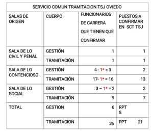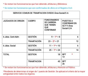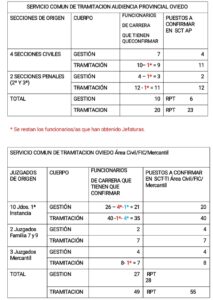 ⭕ ¿CUÁNTOS PUESTOS A CONFIRMAR HAY EN CADA SERVICIO Y ÁREA EN LA OFICINA JUDICIAL DE OVIEDO?