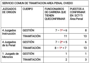 ⭕ ¿CUÁNTOS PUESTOS A CONFIRMAR HAY EN CADA SERVICIO Y ÁREA EN LA OFICINA JUDICIAL DE OVIEDO?
