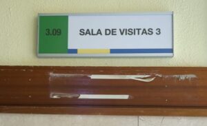 Es vergonzoso encontrarse en el Tribunal de Instancia de Mieres, con carteles mal ubicados y desactualizados que indican «Sala de visItas», «Equipo Psiosocial» e «Intrucción 2».